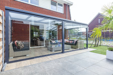 The Nebbiolo Veranda comes in a width of 4, 5 or 6 meters and has a depth of 2.5, 3 of 3.5 meters and is available in the colours cream white (RAL9001) and grey (RAL7024) and has a high quality polycarbonate roofing; a sustainable material with a timeless look, choose ultra clear (just like glass), opaque for privacy and even a solar control heat-resistant variant. This model has been design to sit perfectly against your home, or wall in the garden, constructed in durable maintenance free aluminium.