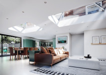 > Stylish glass rooflight with slender aluminium frame offering clean sight lines and neat junctions